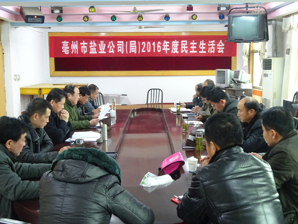 根據(jù)省公司黨委統(tǒng)一部署,1月18日亳州市公司黨委召開2016年度民主生活會,市公司黨委書記李文俊主持會議并講話,市公司董事長、經(jīng)理、局長榮立華出席會議,三縣公司黨政主要負(fù)責(zé)同志參加民主生活會。
