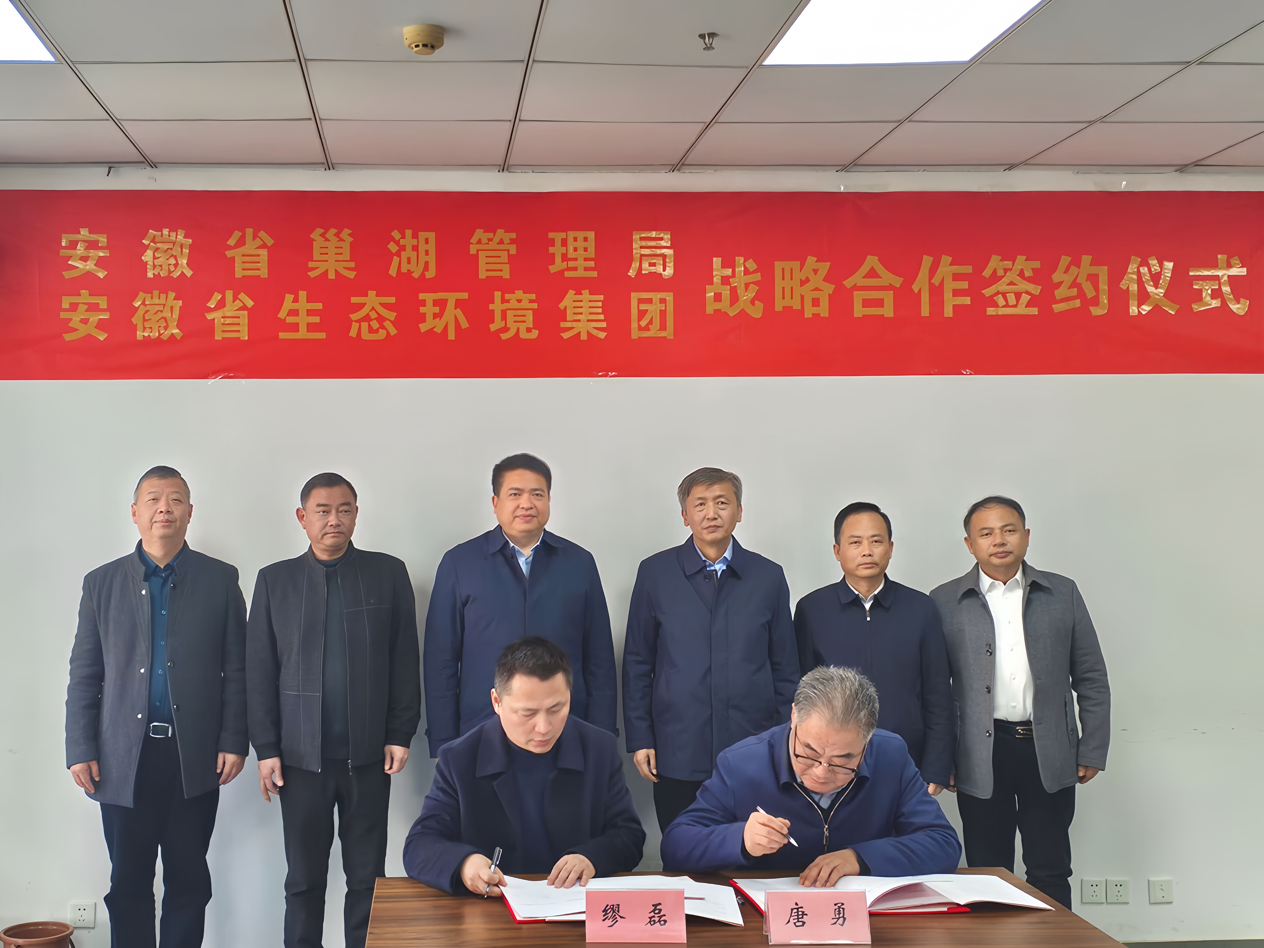 集團(tuán)公司黨委委員、副總經(jīng)理繆磊,省巢湖管理局黨委委員、副局長唐勇代表雙方簽訂戰(zhàn)略合作協(xié)議,環(huán)境科技集團(tuán)、生態(tài)修復(fù)公司以及雙方有關(guān)部門負(fù)責(zé)同志參加簽約儀式。