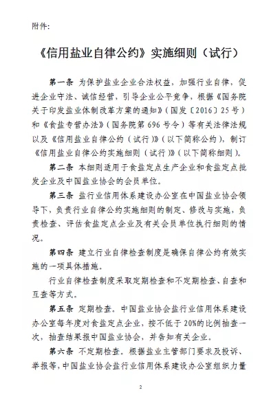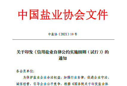 要了解《<信用鹽業(yè)自律公約>實施細則》(試行)的相關內容,首先要從《信用鹽業(yè)自律公約》(試行)說起。