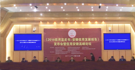 2017年2月25日,由安徽省社會科學(xué)院、安徽省經(jīng)濟(jì)和信息化委員會、安徽省商務(wù)廳、安徽省工商行政管理局、安徽省人民政府法制辦公室、安徽省人民政府金融工作辦公室、安徽省信用協(xié)會和安徽省信用研究中心聯(lián)合舉辦的《2016信用藍(lán)皮書——安徽信用發(fā)展報告》發(fā)布暨信用安徽高峰論壇在省人大會議中心召開。