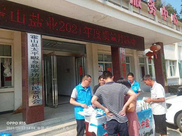 9月27日,霍山縣鹽業(yè)公司利用到太平畈鄉(xiāng)耿家坊村扶貧之際,結(jié)合鹽業(yè)發(fā)展公司《旺季市場(chǎng)營(yíng)銷宣傳工作方案》“四進(jìn)一參”相關(guān)要求,開展了“質(zhì)量月”主題宣傳活動(dòng)。