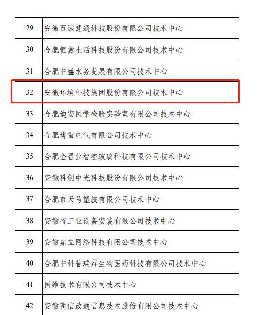 安徽環(huán)境科技集團(tuán)被認(rèn)定為安徽省企業(yè)技術(shù)中心