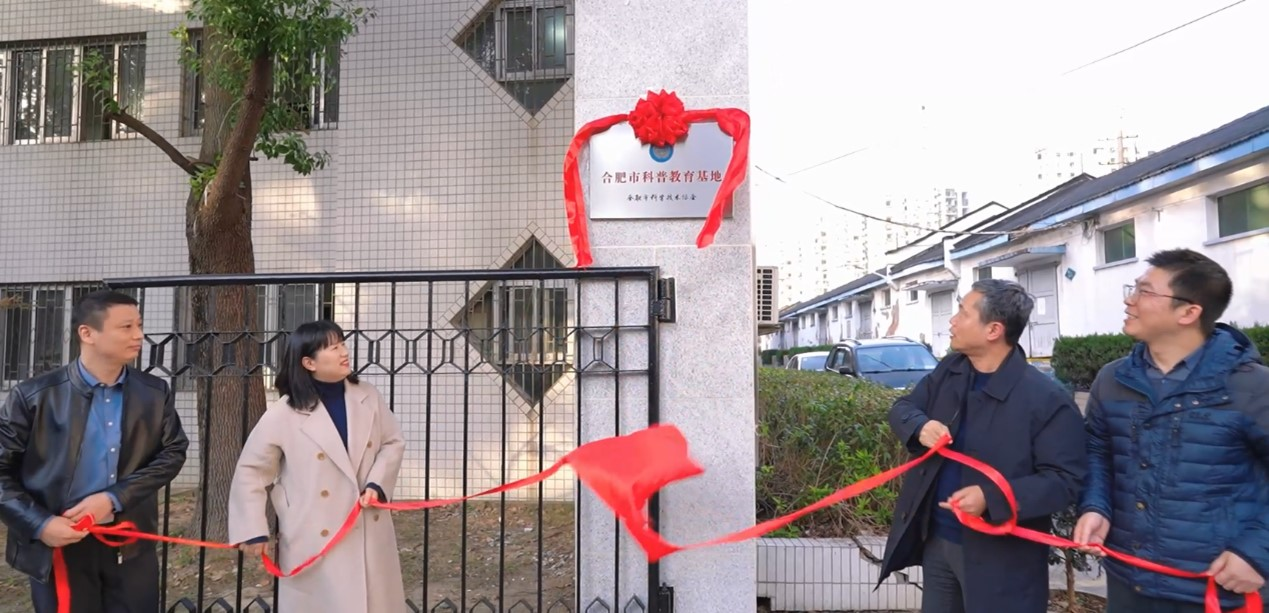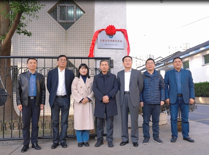座談會(huì)后,出席儀式的領(lǐng)導(dǎo)共同為“合肥市科普教育基地”揭牌,并合影留念。