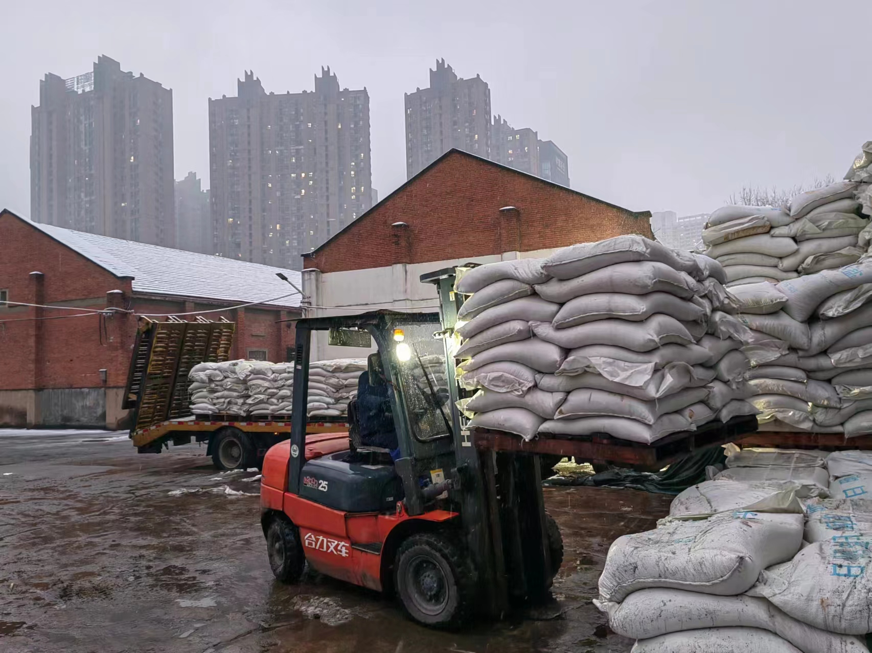 公司領(lǐng)導(dǎo)班子親赴倉儲配送一線指揮調(diào)度,全市一市五縣鹽業(yè)干部職工眾志成城抗冰雪,頂著風(fēng)雪嚴(yán)寒,冒著雨雪和刺骨的寒風(fēng)奮戰(zhàn)在保供一線。截至2月4日下午,合肥鹽業(yè)共出動配送車輛200臺次、配送人員100余人次、累計發(fā)出融雪鹽1500余噸,為清除全市各大公共交通道路積雪提供了有力保障。同時,將倉庫內(nèi)過期及破損小包裝鹽品拆袋裝換,為此次保供任務(wù)轉(zhuǎn)化融雪鹽品近20噸。4日晚上11點臨時接到市政部門緊急用鹽,公司搬運人員在已連續(xù)作戰(zhàn)48小時的情況下,仍第一時間從家中趕至公司,奮戰(zhàn)在融雪鹽保供一線。