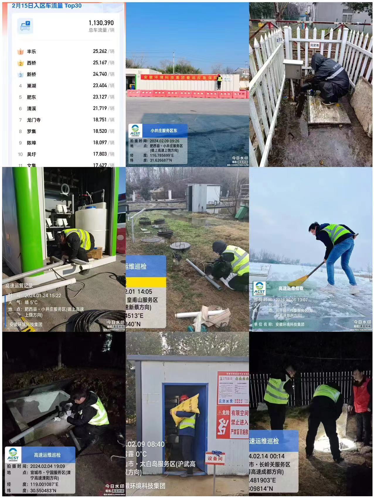 春運(yùn)期間,安徽高速部分服務(wù)區(qū)超歷史最大客流量,針對污水超量嚴(yán)重的服務(wù)區(qū),環(huán)境科技集團(tuán)公司統(tǒng)籌安排,將高速服務(wù)區(qū)污水外運(yùn)至附近項目公司場站進(jìn)行處置。除夕至年初一期間,環(huán)境科技集團(tuán)公司利用高速客流短時回落的窗口期,緊急協(xié)調(diào)調(diào)試檢修設(shè)備,確保返程高峰期運(yùn)維服務(wù)質(zhì)量。年初五夜間,由外單位負(fù)責(zé)運(yùn)維的陳埠服務(wù)區(qū)突發(fā)泵站故障,接到協(xié)助請求后,環(huán)境科技集團(tuán)公司不講條件,連夜組織運(yùn)維人員趕赴現(xiàn)場,迅速完成搶修,以實際行動踐行國企擔(dān)當(dāng)。