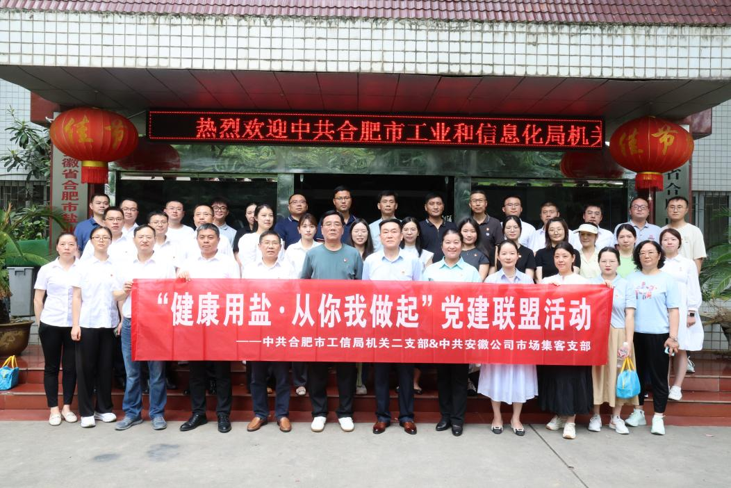 8月30日上午,合肥市工業(yè)和信息化局機關二支部、安徽省通信產業(yè)服務有限公司市場集客支部赴合肥市鹽業(yè)公司,開展“健康用鹽 從你我做起”共建主題黨日活動。市工信局駐局紀檢監(jiān)察組組長、黨組成員李玲,市工信局產業(yè)政策處處長周玉玲,安徽省通信產業(yè)服務有限公司市場集客支部書記陳猛,合肥市公司黨委書記、董事長張鷹,黨委委員、副經(jīng)理張革,以及共建單位黨員同志參加活動。